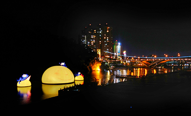 月が男の子に寄り添い、静かで幸せな時間が、周囲の自然と相まって感動を与える川面のインスタレーションになり、人々の注目を碧潭独特の風景に再び集める。